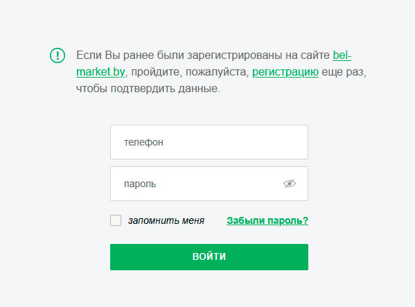 Вход в личный кабинет Белмаркет на сайте https://cabinet.bel-market.by